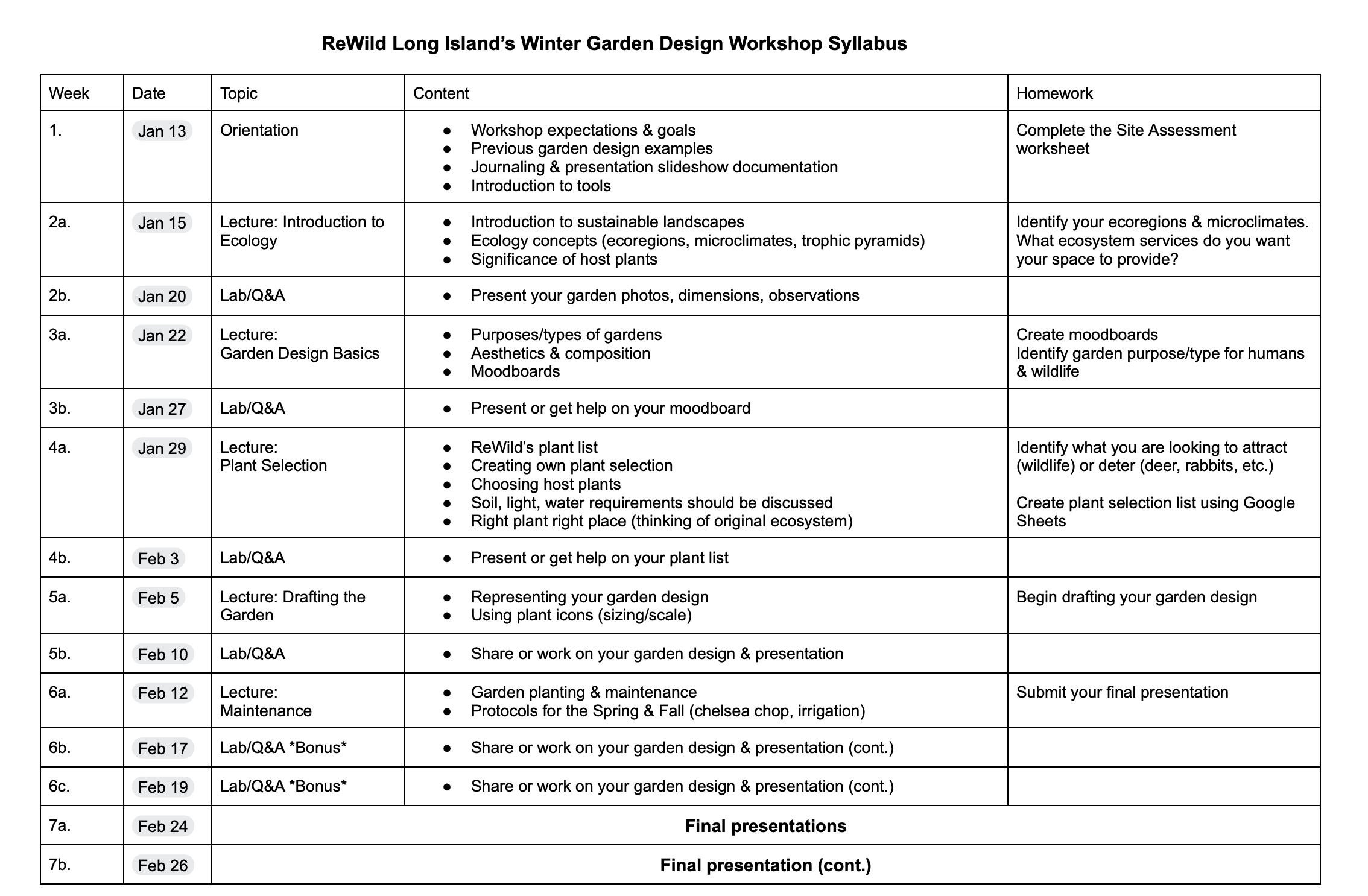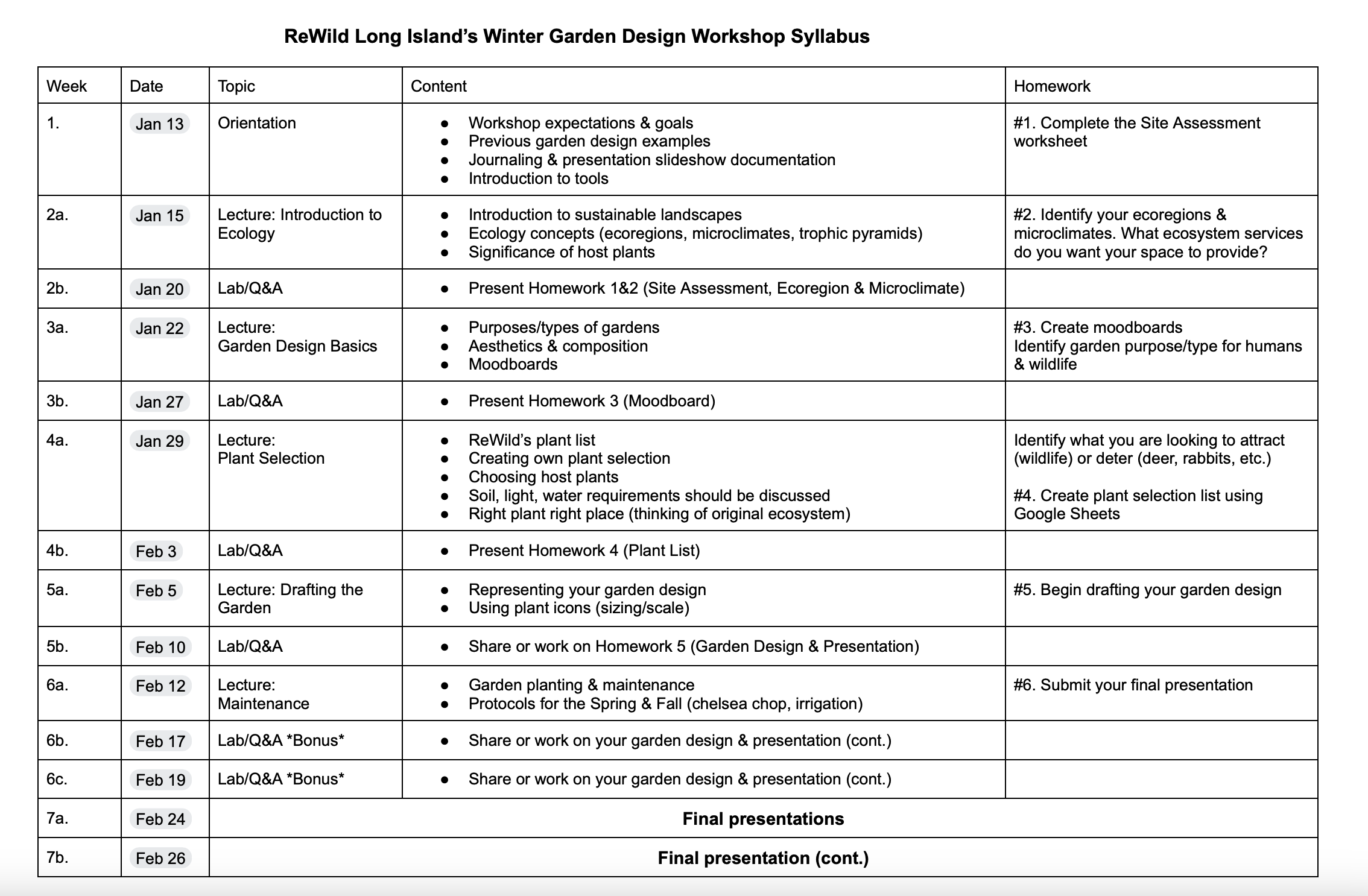 For questions about the ReWild Garden Design workshop, please email Samantha@rewildlongisland.org.